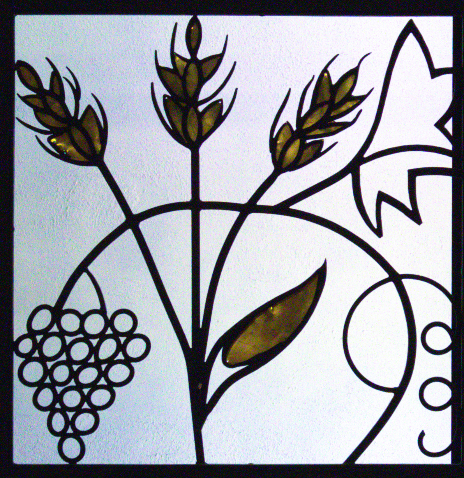In his commentary on this passage, St Cyril says: “Do not doubt whether this is true, but rather receive the words of the Savior in faith, for since he is the truth, he cannot lie.” He offers us his body, blood, soul, and divinity through the Sacrament of Eucharist and assures us of his Real Presence through the truth of his Word. This panel has the wheat and grapes, fruits of God’s blessings of a bountiful harvest, which become the bread and wine, fruits of our hands that we bring up at the Offertory of Mass.
